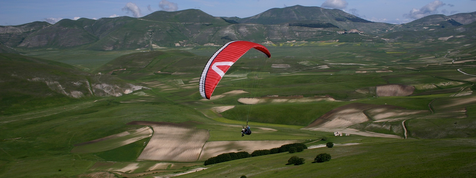 Ob Thermikfliegen, Soaring oder Groundhandling: Diese Kulisse lässt jedes Fliegerherz höherschlagen! Die idyllische Hochebene liegt auf 1340 m, oberhalb von Norcia (608 m), und ist ein eigener Mikro-Kosmos bestehend aus Himmel, Bergen, Frühnebel, Schafen, Hirten, Pferden, Grashügeln und weitläufigen Linsenanbau-Feldern: Wie aus einem Phantasiefilm – und das mitten in Italien.